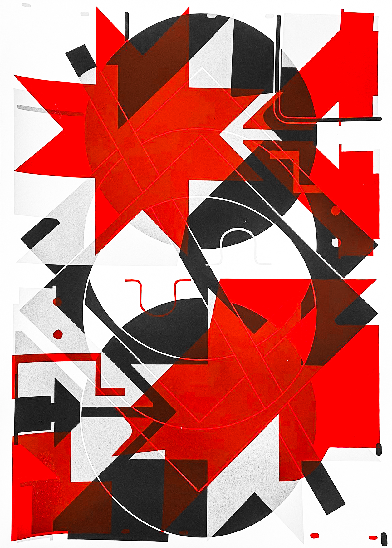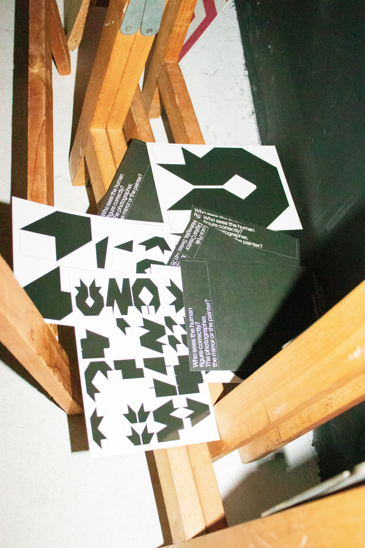 MODULAR – Modular poster-card system and visual communication, The project explores the interplay between modularity and collective visual language. Posters are displayed in a grid, with connections between individual projects forming shapes and symbols. Using a system of 16 rectangles, motifs are combined to generate a code-like visual communication, creating cohesion and meaning through modular assembly.
