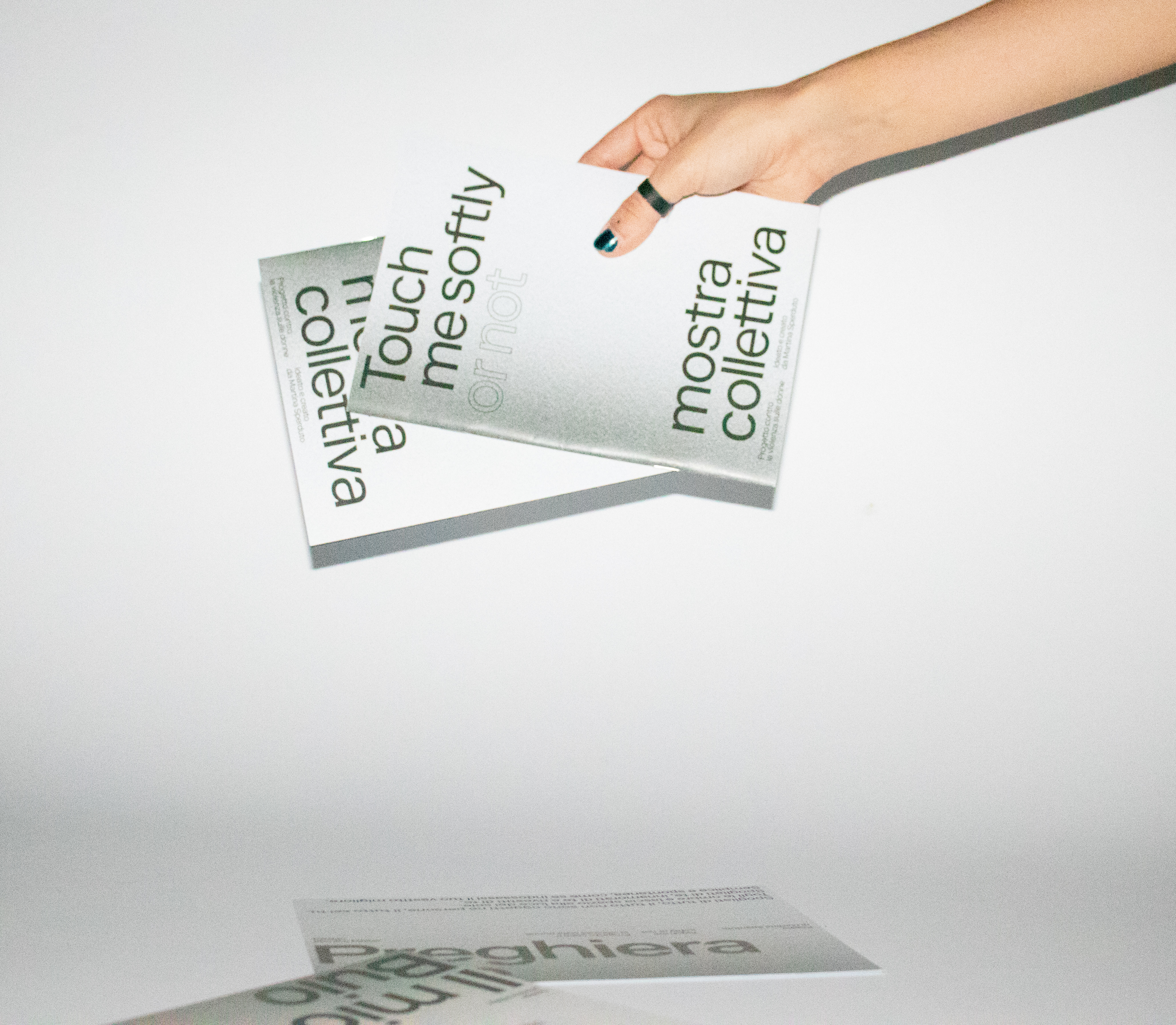 TOUCH ME SOFTLY OR NOT – A visual statement against violence on women, Touch Me Softly or Not is a non-profit project conceived by Martina Sperduto to raise awareness about gender-based violence. The initiative includes a small collection of works presented during an exhibition in October 2020. The accompanying booklet and a set of postcards, designed by Monica Müller, translate the project’s message into a tangible, accessible visual experience.